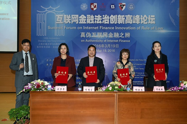 On March 19th, 2016, the “Shanghai. China Summit Forum on Internet Finance Innovation of Rule of Law” was successfully held in Shanghai Jiaotong University Koguan Law School. This forum was hosted by Shanghai Jiaotong University (SJTU) Internet Finance and Law Review, organized by Financial Service& Consumer Protection Law Centre of SUFE Law School, Internet Finance Research Institute Law Centre of Zhejiang University, Think Tank Research Center of Shanghai Academy of Social Sciences, and Internet Finance Innovation of rule of Law Research Centre of SJTU, and supported by SORSA Research Centre. The theme of this forum is “Authenticity of Internet Finance”. The content of conference includes the orientation and development strategy of Internet Finance, the risk prevention and rule of law on Internet Finance, and signing ceremony for cooperation agreement on research of Internet Finance.