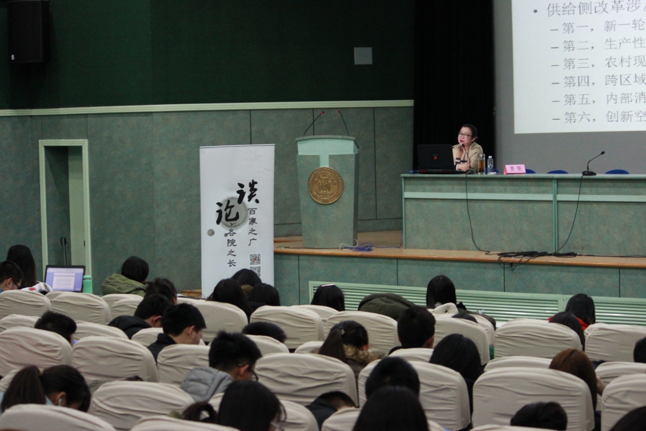 The Student Union’s academic department of Shanghai University of Finance and Economics made the Lun Tan Forum famous in and around our university through the integration of school academic resources. On the evening of Mar. 24th, 2016, Law Professor in our school Jian Zeng was invited to deliver a lecture for Lun Tan Forum to students from different schools in the hall on the second floor of the administrative building. Her topic was Interpretations of the Structural Reform of the Supply Front from the Administrative Law Aspect. The lecture lasted for about two hours. Professor Zeng and the students interacted frequently during this time.