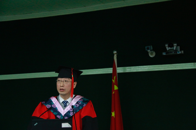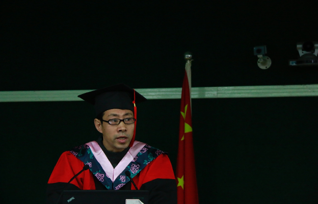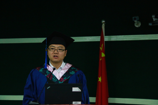 After the Professor Zhu, the student Tang Haibo spoke as a student representative who is from Wenshan in Yunnan Province. He talked about his gratitude to SHUFE as an Alma Mater, his thanks to teachers, his thoughts about three-year learning. He said, three-year learning life has cultivated his strict logical thinking ability, the professional knowledge reserves, as well as a broad academic vision.