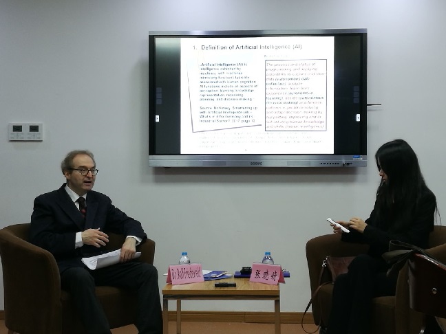 Dr. Rolf Friedewald introduced the connotation of AI (Artificial Intelligence), its economic, commercial and social impacts, its impact on global law, its prospects and thinking to our students. Ms. Zhang Xiaojing showed the beautiful environment, strong faculty, rigorous learning atmosphere and diversified education programs of their university to our students with video clips, and welcomed more law school students to go to Germany for further studies.