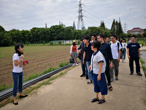 On the morning of September 8, Professor Yoshikawa Nakagawa and the special lecturer of Park Jung-woo, Faculty of Economics, Hitotsubashi University, Japan, led the school to Fu Bozhen, Yokoo Ichi, Ota Yasuke, Ohara Ami, Mitsui Risuke, Yamanaka, Shinsuke Asuka, Yuki, Imi. 11 students, including Guo Yuchen and Fujita, and 11 associate students, including Professor Ge Weijun and Zhang Jincai, Li Pu, Zhou Yuan, Zhang Yuxin, Zhang Ke, Wang Xuhui, Zhang Chi, Shao Mengyu, Cui Lianning, Xia Danni, Li Jianming, etc. Prof. Zhang Wenming from the School of Social Development of the Normal University, Associate Professor Li Jing from the School of Economics and Management, and 6 graduate students from the School of Social Development, gathered at the entrance of Shanghai University of Finance and Economics and took a bus to the cooperative in Gangxi Town, Chongming Island to conduct an in-depth investigation.