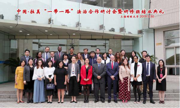 On the afternoon of May 30, the completion ceremony of the China-Latin America “Belt and Road” Law Cooperation Seminar·the Seminar on China-Latin America and Caribbean Countries Lega Talent Exchange Program was solemnly held in SUFE. Deputy Director of the International Liaison Department of the Chinese Law Society presides over the work Shi Weidong, Full-time Vice President of the Shanghai Law Society; Zhou Jiepu, Standing Committee Member of the Party Committee of SUFE, Secretary of the United Front Work Department and Director of the China-Latin America Legal Training Base; Song Xiaoyan, Dean and Professor of the Law School of SUFE; Yang Le, Secretary of the Party Committee of Law School; Luo Shanhong, Deputy Secretary of the Party Committee of Law School participate this ceremony. Besides, lawyers and scholars from Chen & Co. Law Firm, DHH Law Firm, Shanghai University of International Business and Economics, School of International Law of East China University Of Political Science And Law and Law School of SUFE, and 16 justices, prosecutors, lawyers, scholars and corporate staff from 13 countries in Latin America and Caribbean participate in this seminar and completion ceremony together. The whole seminar and completion ceremony was hosted by teacher Wang Jinlin from Law School of SUFE.