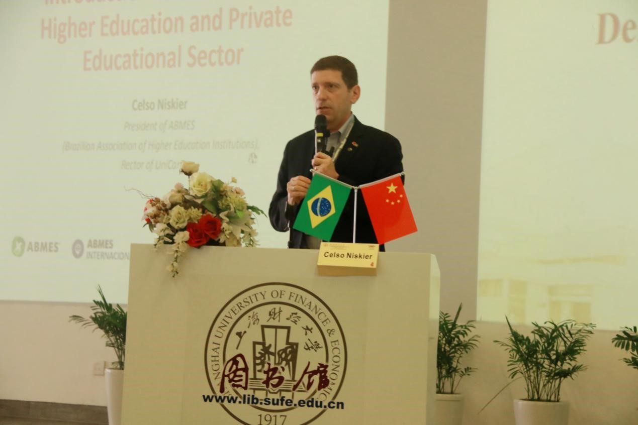 Celso Niskier, Chairman of ABMES International Delegation, delivered a speech on behalf of ABMES. Chairman Celso Niskier thanked for the invitation by SUFE Law School. He introduced the education system and current situation of private universities in Brazil. Higher education in Brazil is composed of public schools and private schools, among them, the number of private universities accounted for 88.2% of the total number of higher education in Brazil. The education of private universities spans three stages, undergraduate, postgraduate and doctoral phase, and various majors such as business, management, education, engineering, and law. Among all the majors in Brazilian private universities, law is the most popular. Chairman Celso Niskier stressed that this exchange experience can significantly expand and deepen further cooperation and interactions between students and teachers in a bilateral way.