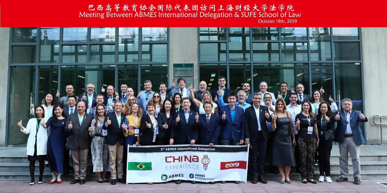 On the morning of October 19, 2019, the international delegation from Brazilian Higher Education and Private Educational Sector (ABMES) visited Shanghai University of Finance and Economics Law School. The meeting was successfully held on the 7th floor of SUFE library. The ABMES International Delegation consisted of Chairman and President of UniCarioca Mr. Celso Niskier, Executive Director Mr. Solon Hormidas Caldas, Vice Chairman and Ser Educacional Group Chairman Mr. Jose Janguie Bezarra Diniz, and other presidents and senior management of major private universities in Brazil. The members added up to forty. Shanghai University of Finance and Economics Deputy Party Secretary Chen Hong, Shanghai University of Finance and Economics Law School Dean Song Xiaoyan, Deputy Dean Ge Weijun, Dean Assistant Wu Wenfang, and Pan Xiao, Cai Yuanzhen, Jiang Jize, Zhang Mingchao attended the exchange activity.